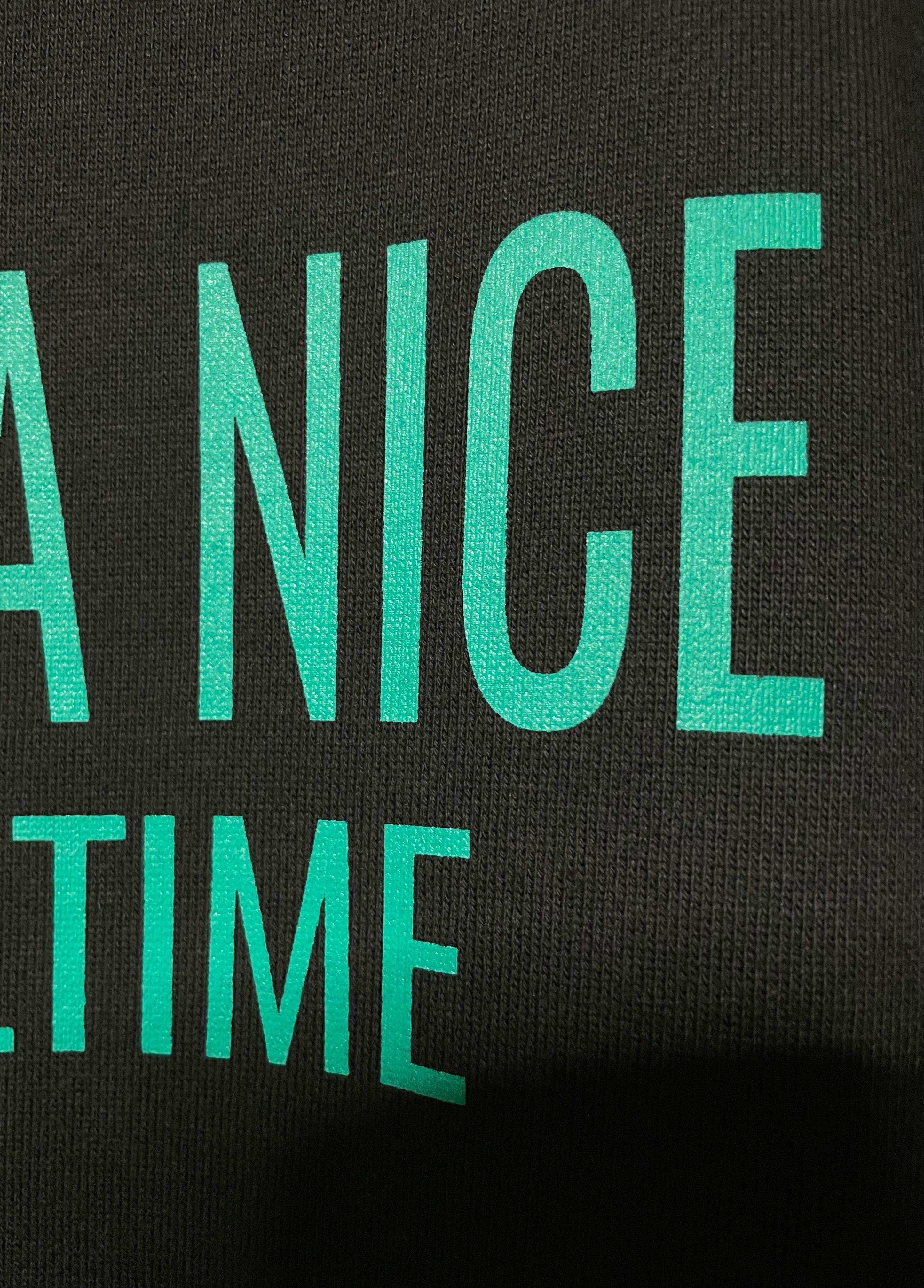 フロント、バック共にエメラルドグリーンの"HAVE A NICE CHILLTIME"が入ります。